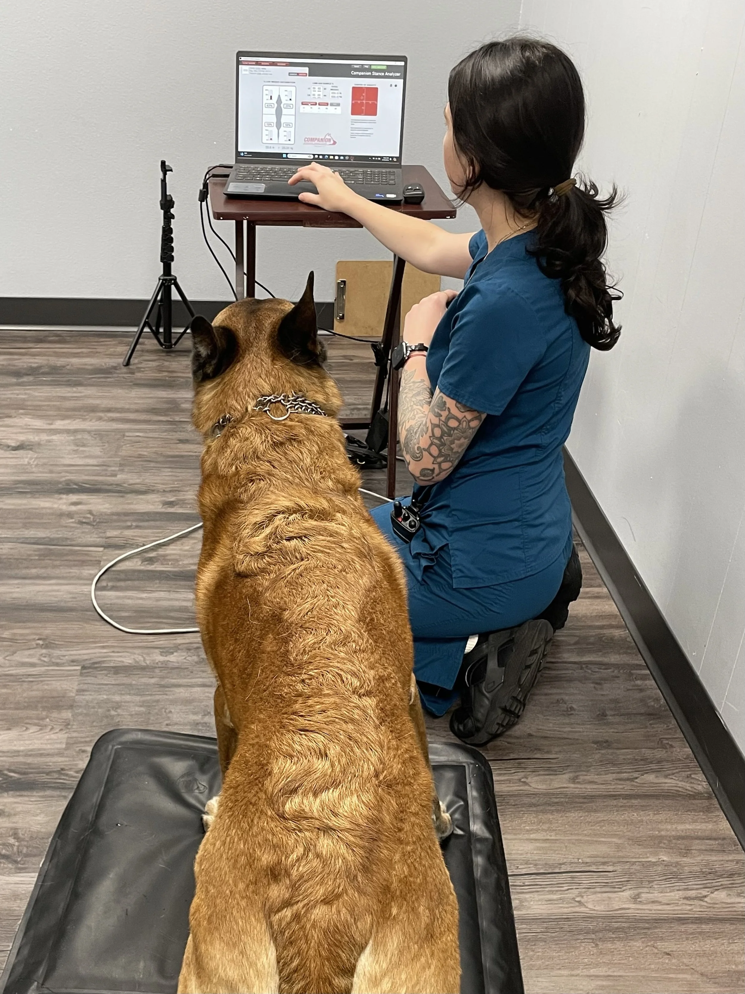 Our cutting-edge Companion Stance Analyzer uses sensor plate technology to objectively measure your pet's weight distribution and balance. This innovative diagnostic tool tracks progress and customizes therapy by detecting even subtle gait changes.